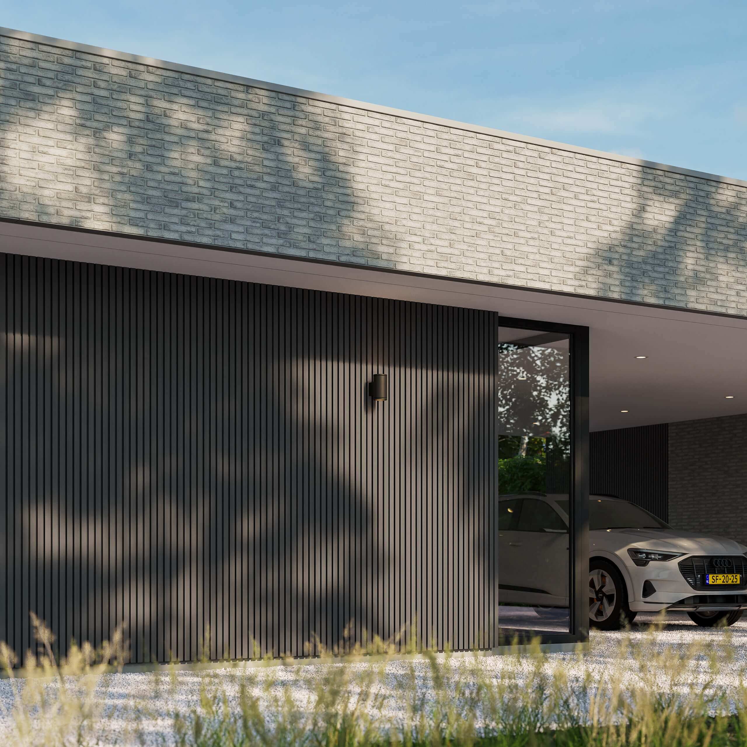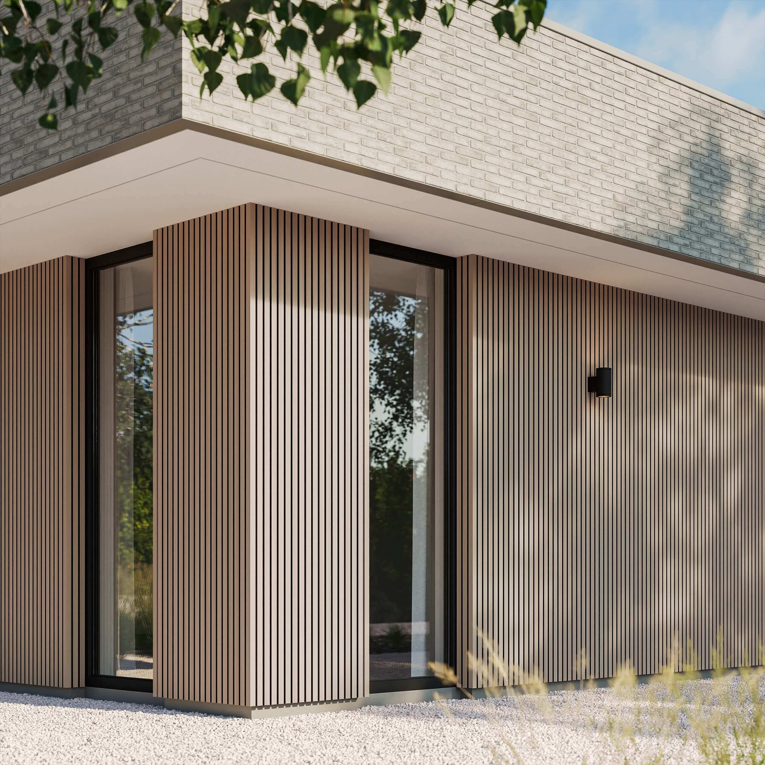 Wandbekleding houdt niet op bij de voordeur. Ook buiten kun je sfeer creëren met de duurzame WPC buitenpanelen van Barnwoodweb. Deze panelen zijn gemaakt van een mix van houtvezels en kunststof, waardoor ze bestand zijn tegen weer en wind zonder dat ze onderhoud vragen zoals echt hout.