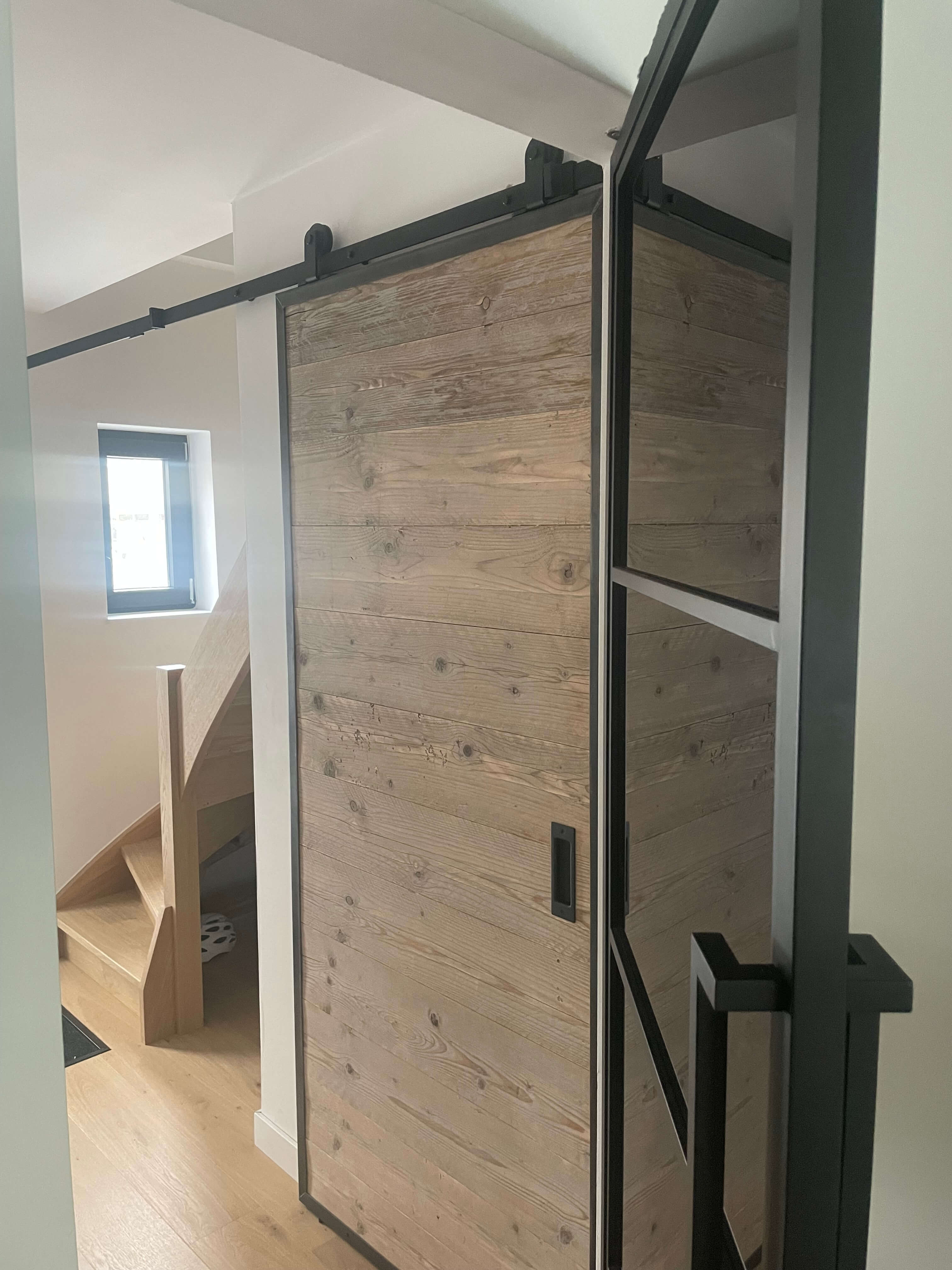 De mooiste interieurs ontstaan vaak door materialen te combineren. Denk aan een warme houten schuifdeur in combinatie met een stalen binnendeur, of een taatsdeur die licht en ruimte toevoegt.