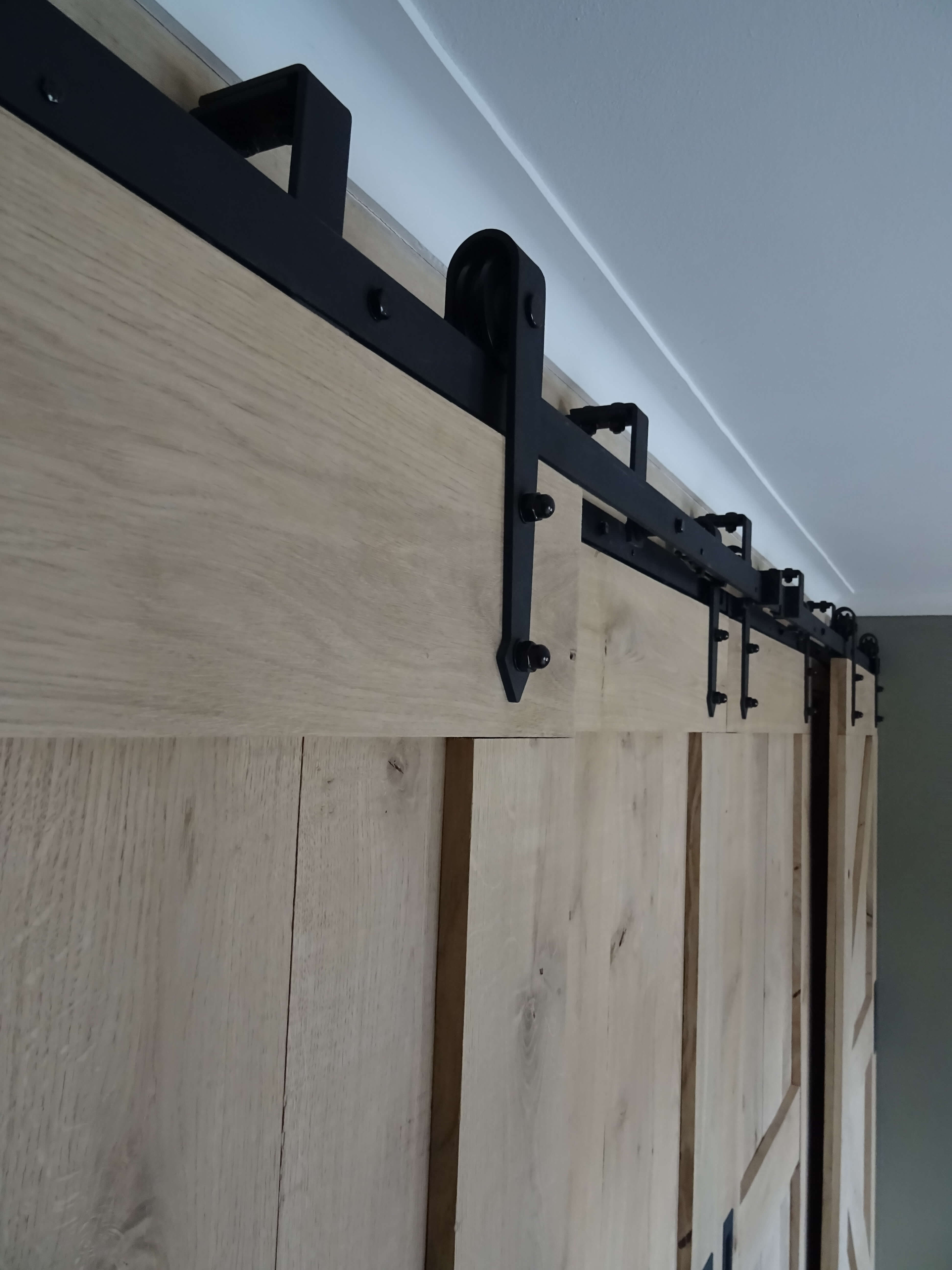 Deze combinatie zie je steeds vaker terug in schuifdeuren met stalen frames, houten wandplanken met zwarte dragers, of interieuraccessoires waarbij hout en staal samenkomen. Het voelt natuurlijk, warm en tegelijkertijd stoer.